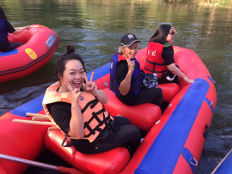 พร้อมแล้วก็ไปล่องแก่งกันเลยค่ะ สองนิ้วสู้ตายหน้าตาสดใสมากๆ เลย อย่าลืมใส่อุปกรณ์ safety เพื่อความปลอดภัยของท่านเองด้วยนะคะ