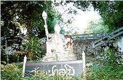 หลวง ปู่ขาว อนาลโย ผู้เป็นประธานสงฆ์ อยู่ ณ วัดกลอง เพล จ.อุดรธานี และยังมี พระพุทธลีลา หรือพระยืนที่ท่านตั้งใจจะ สร้างขึ้น ซึ่งเป็นพระพุทธรูปปางลีลาที่สูงใหญ๋ที่สุด สร้างไว้บนยอด เขาตรีเพชร มีความสูง 25 เมตร กว้าง 6 เมตร น้ำหนักรวม 254 ตัน พระองค์นี้ใน ตอนแรกได้สร้างเป็นชิ้น ๆ ก่อน แล้วค่อยนำมาประกอบ ขึ้น ซึ่งต้องใช้ความอดทน มากทีเดียว กว่าจะได้ออกมาเป็นรูปเป็นร่าง อย่างที่เราได้เห็นกันอยู่นี้